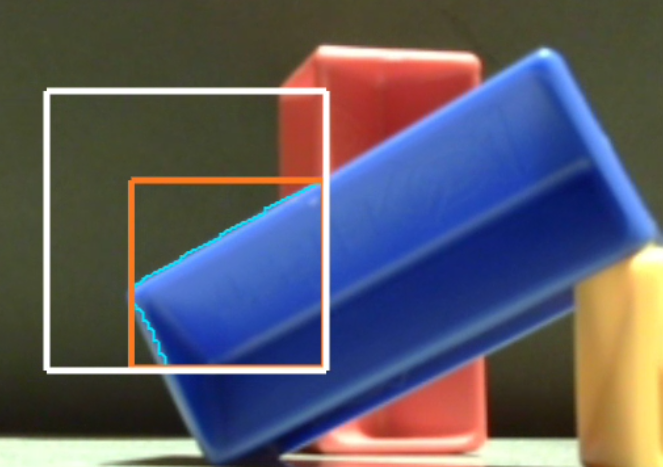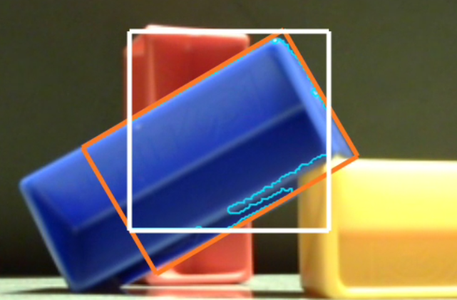 The orange rectangle, called the boxFit, fits tightly around the extreme edges of the Blob. The boxFit is not required to stay inside the Region of Interest. In the above case, the best-fitting rectangle happens to stay inside the ROI.