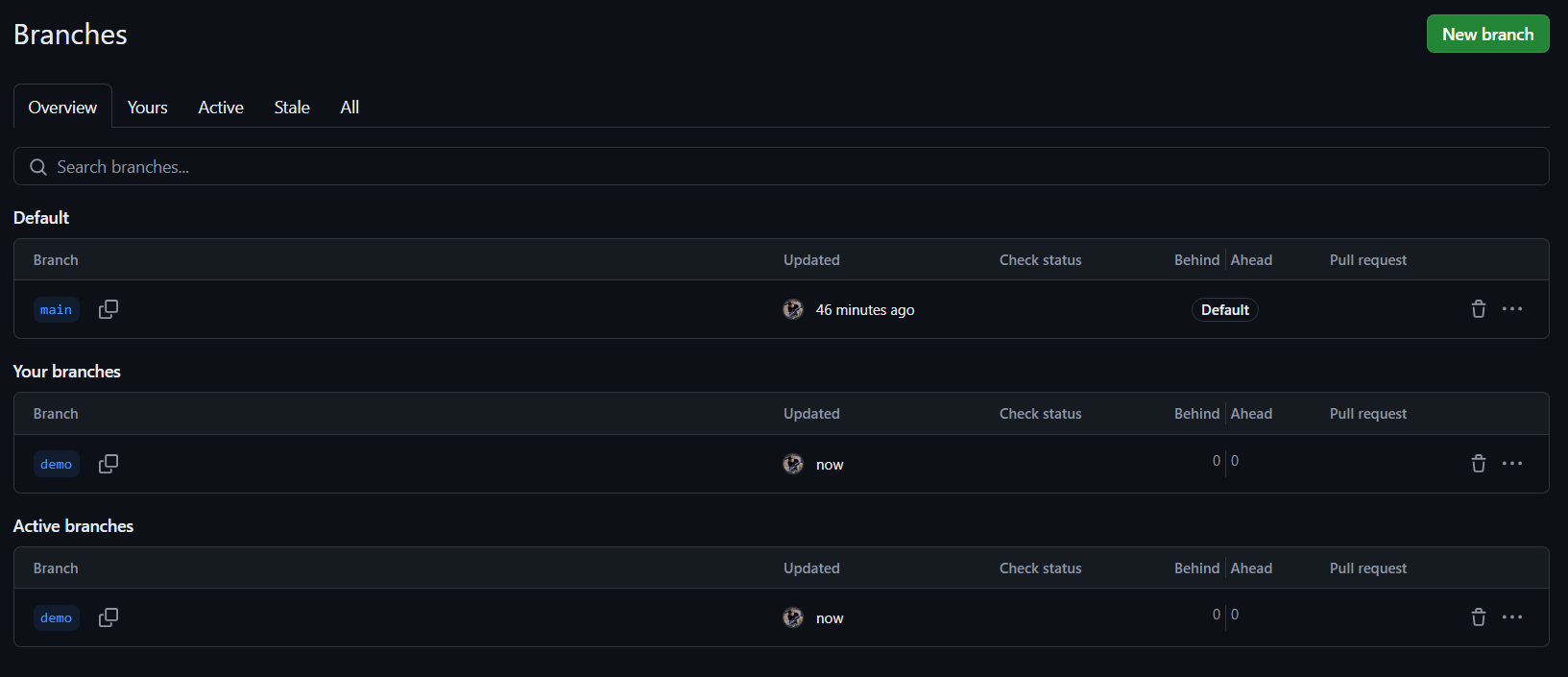 selection that will appear. Let’s call this new branch demo. For real