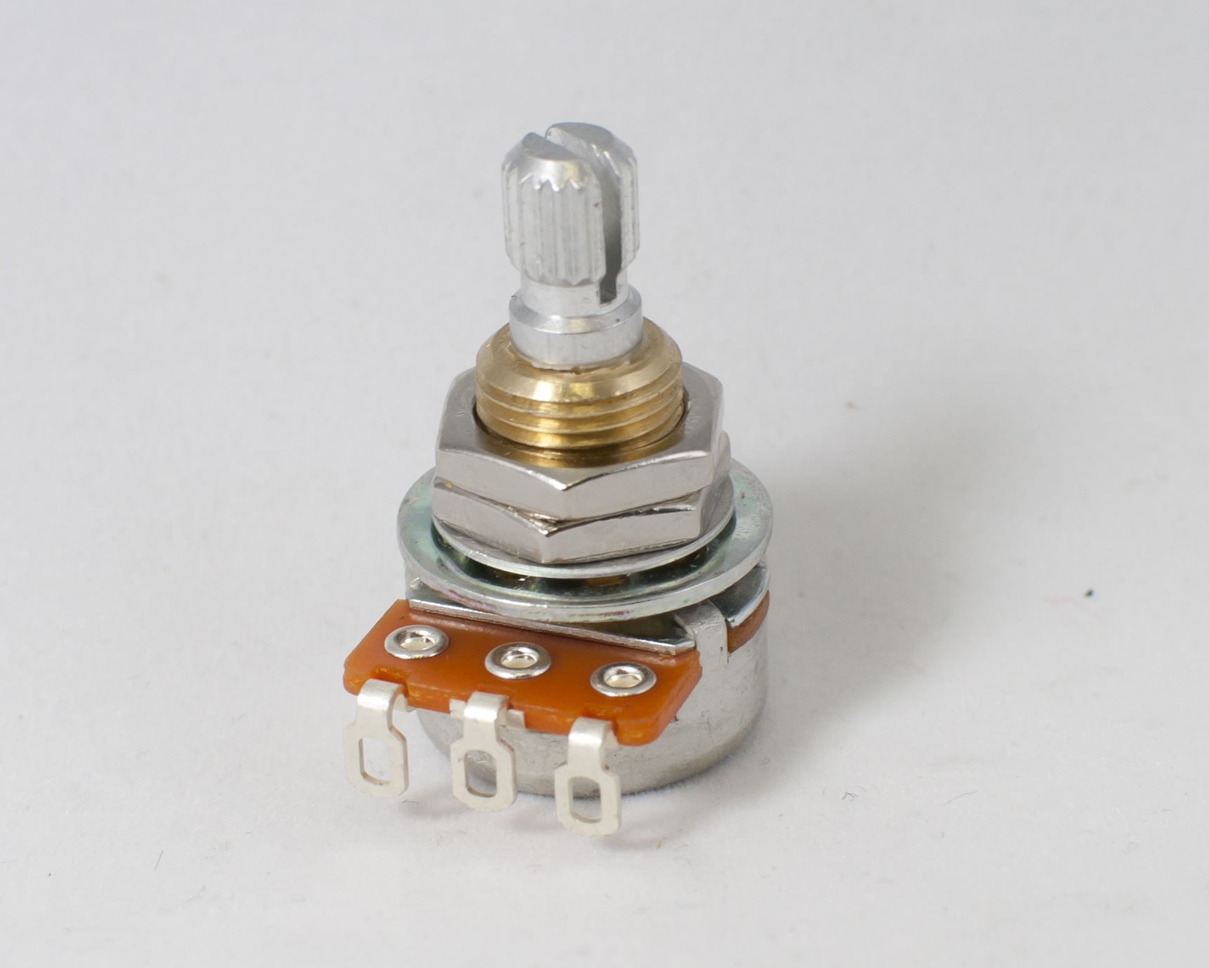 A Potentiometer is a device that changes the output voltage based upon the degree to which the adjuster is turned. It is often used as a form of measuring the absolute orientation of an axle. The manner in which the output voltage changes is based on the Potentiometer that is used. Such a device is typically attatched via the analog port of the REV Hub.