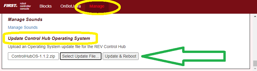 More info about updating the Control Hub OS is at REV Robotics’ excellent documentation site.