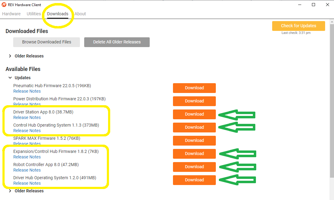 REV Hardware Client Available Updates