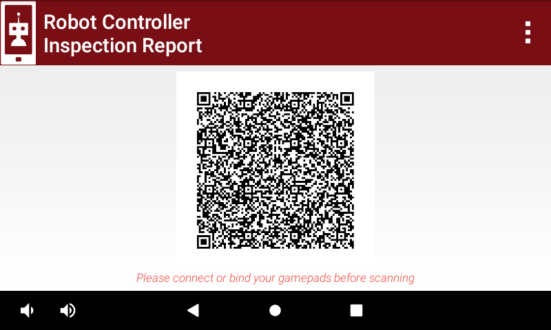 The Self Inspection reports may be reviewed in Robot Inspection at an FTC tournament, but is not a comprehensive or official standard of compliance with FTC rules. With the robot and driver station turned on and connected the inspector may go through the Inspection Checklist form (on paper or a tablet). They will check both the Driver Station Inspection Report and the Robot Controller Inspection Report, both of which can be displayed from the DS. Many FTC events will scan the QR Code that is displayed on the RC Inspection Report.