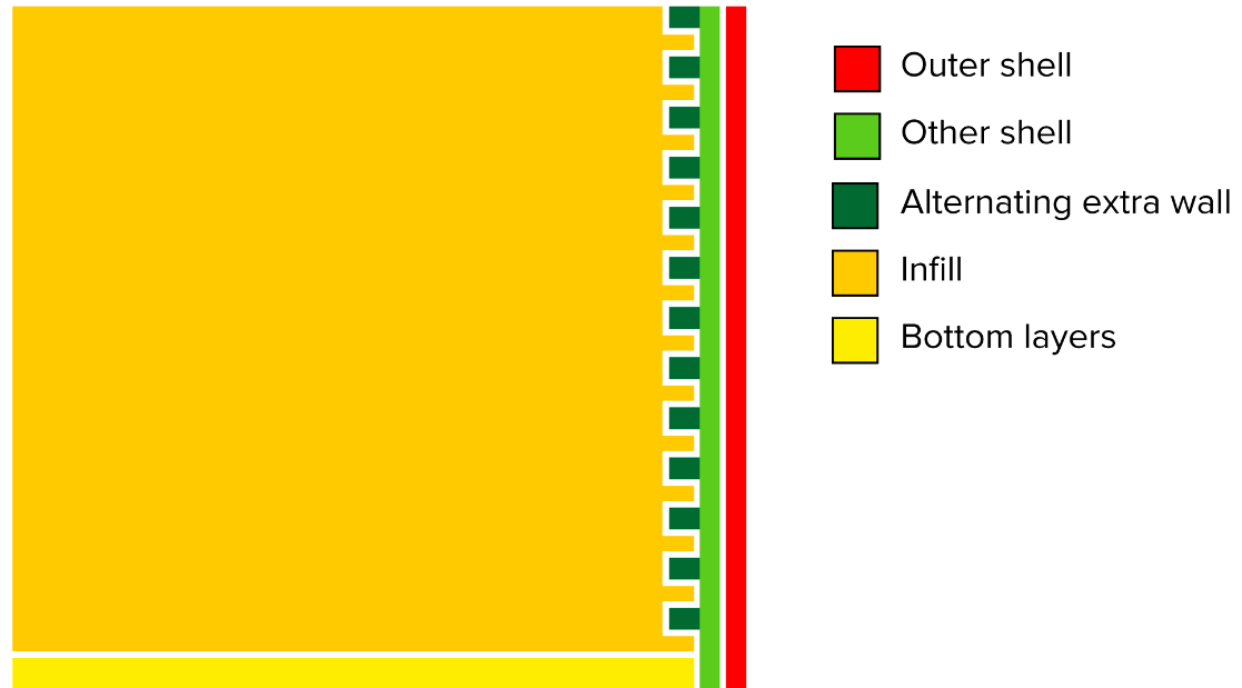 While sometimes a tough setting to find, this alternating extra shell interlocks with infill and considerably impacts strength.