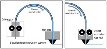 Direct drive extrusion systems have a couple advantages over Bowden, most notably the ability to print with a wider range of materials (particularly flexibles) as well as more consistent extrusion and retraction. However Bowden printers are almost always cheaper so we’d recommend evaluating what kinds of printing your team needs and go from there.