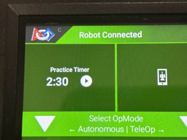 How does it work? In the upper-left corner of the Driver Station App you will see the “Practice Timer Window”. This has the heading “Practice Timer” and has the remaining time (in a possible practice match) as well as a “PLAY” button. This Practice Timer area is always visible regardless of what OpModes are running or any other activities (on the same screen). This Practice Timer also runs independently of other activities, therefore OpModes can be selected, started, stopped, reselected, and so on while the Practice Timer is running without affecting the timer.